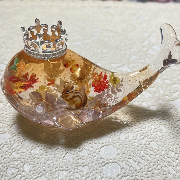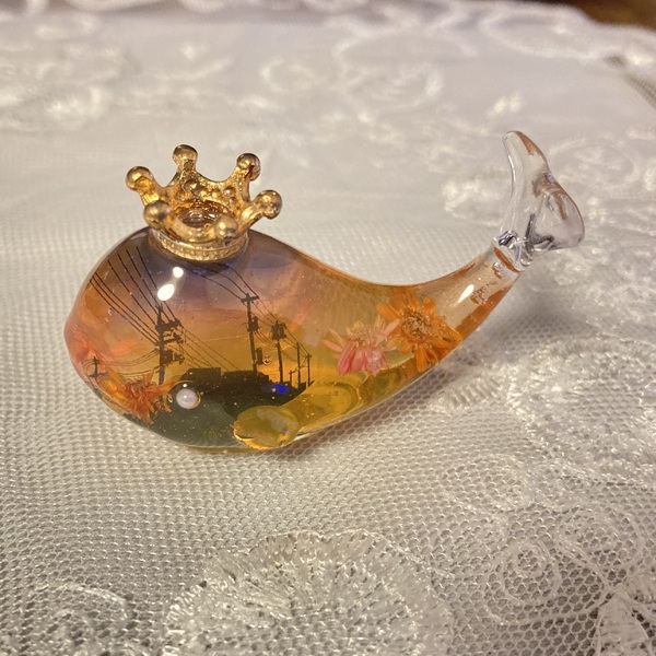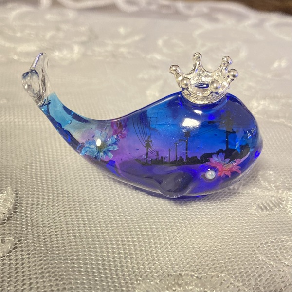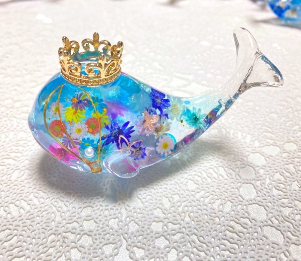 本物のお花とレジンを使ったくじらのハーバリウム