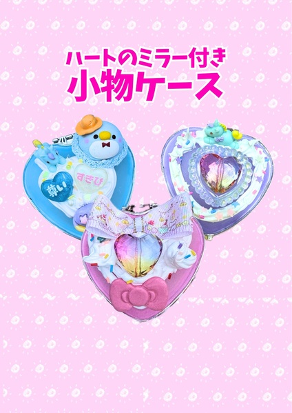 ハートのミラー付き小物いれ