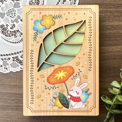 木の御朱印帳(うさぎとお花)