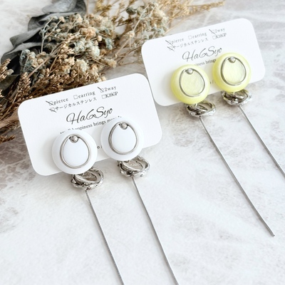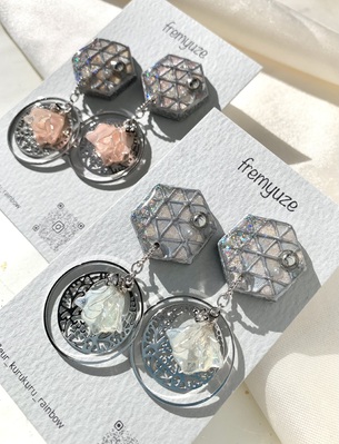 フリルフラワーの耳飾り(シルバーカラー×ピンクorライトブルー)